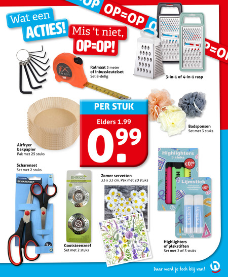 Voor veel van deze aanbiedingen geldt Op=Op of zolang de voorraad strekt. Voor sommige aanbiedingen gelden aanvullende voorwaarden. De getoonde on-line prijzen zijn zonder evt verzendkosten en een momentopname en kunnen wijzigen. Wij raden u aan ook de (on-line) folders van de winkels te bekijken voor u gaat inkopen. Voordeelmuis aanvaardt geen aansprakelijkheid voor de juistheid of volledigheid van de getoonde informatie. Lees onze volledige disclaimer. Uw privacy is gewaarborgd middels onze privacy verklaring.Heeft u opmerkingen over of aanvullingen op deze pagina? Verstuur feedback.