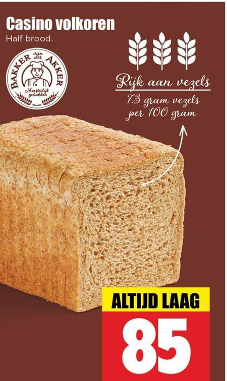 100 casino volkoren brood bakker meesterlijk gebakken rijk vezels laag