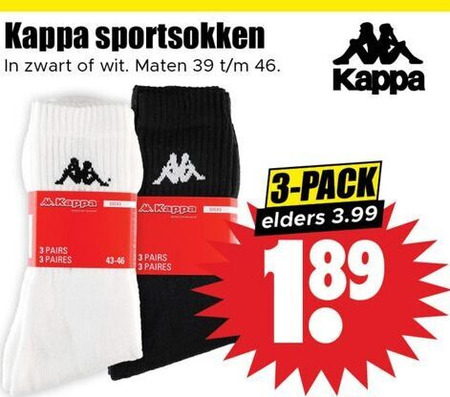 46 kappa sportsokken zwart wit maten pack elders 3.99 pairs