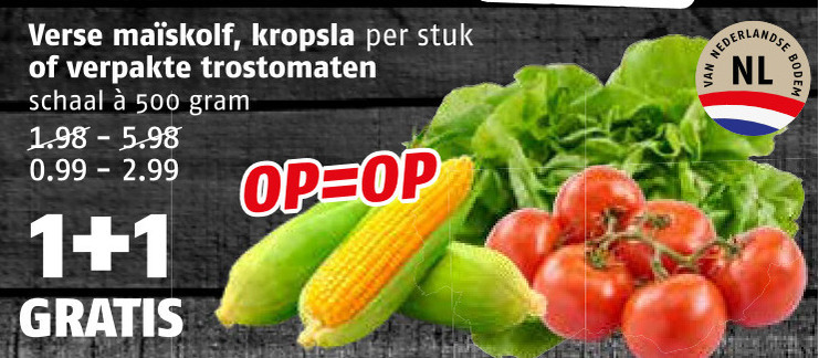 500 verse kropsla stuk verpakte trostomaten schaal nl