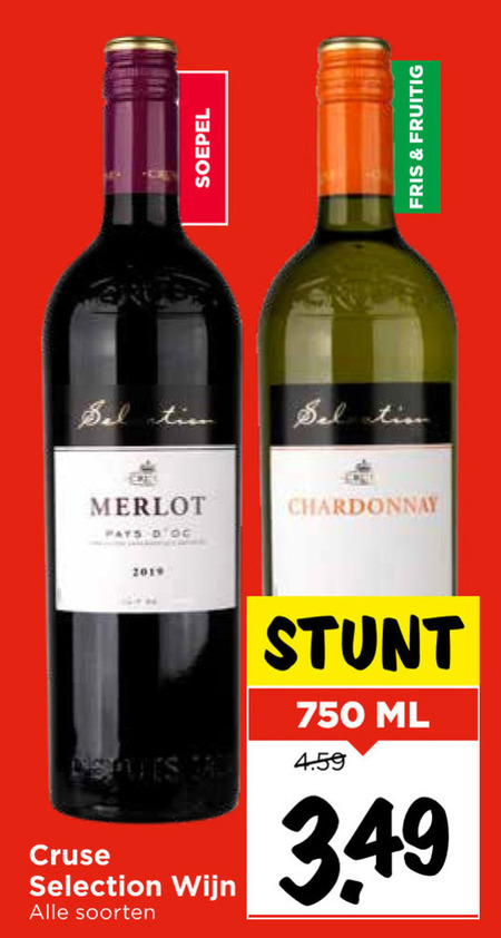 750 soepel bel tin sel tim merlot pays chardonnay cruse selection wijn soorten ml fris fruitig