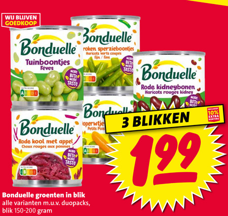 10 bonduelle tuinboontjes bite taste roken sperzieboontjes haricots verts core fijn fins rode kidneybonen rouges kidney nutri score kool appel choux aux pommes groenten blik duopacks petits pois blikken