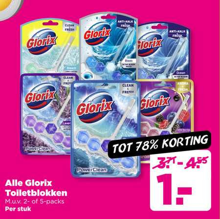 glorix clean fresh anti kalk bleach lasting bleek blauw las ocean aroma toiletblokken stuk wild berries