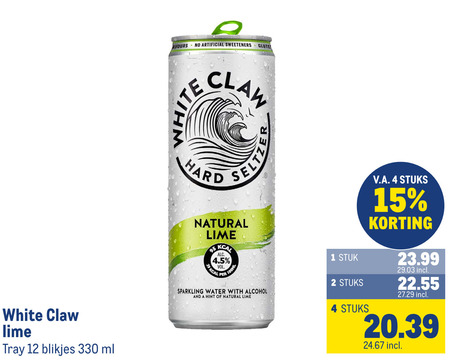 hard seltzer 12 15 330 white claw lime tray blikjes ml artificial sweeteners natural kca 100ml stuk stuks v.a. sparkling water with alcohol and hint