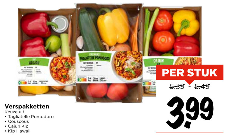 tagliatelle pomodoro hawaii verspakketten couscous cajun kip stuk 3.99