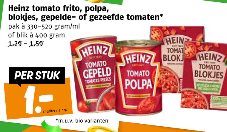 100 400 heinz tomato frito blokjes gezeefde tomaten pak ml blik stuk tomates blok kilo liter v.a. m.u.v bio hit