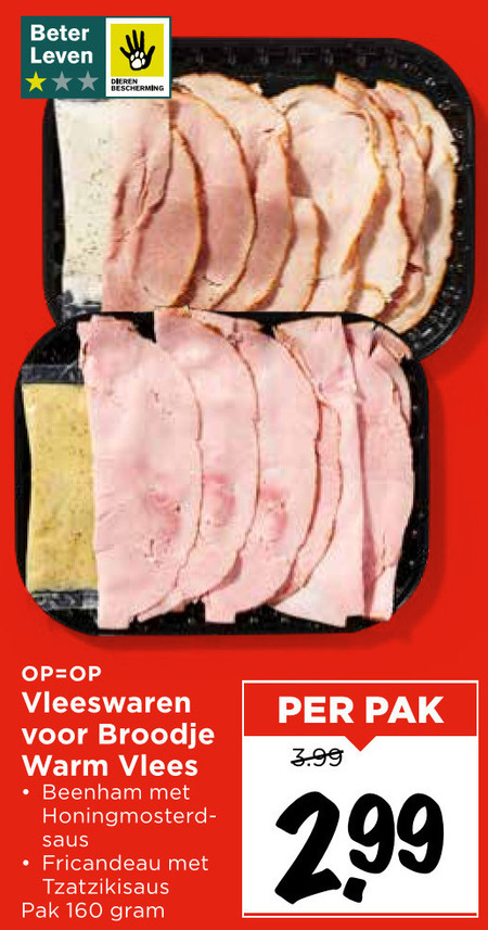 160 beter leven dieren bescherming vleeswaren broodje warm vlees beenham saus fricandeau tzatzikisaus pak 3.99