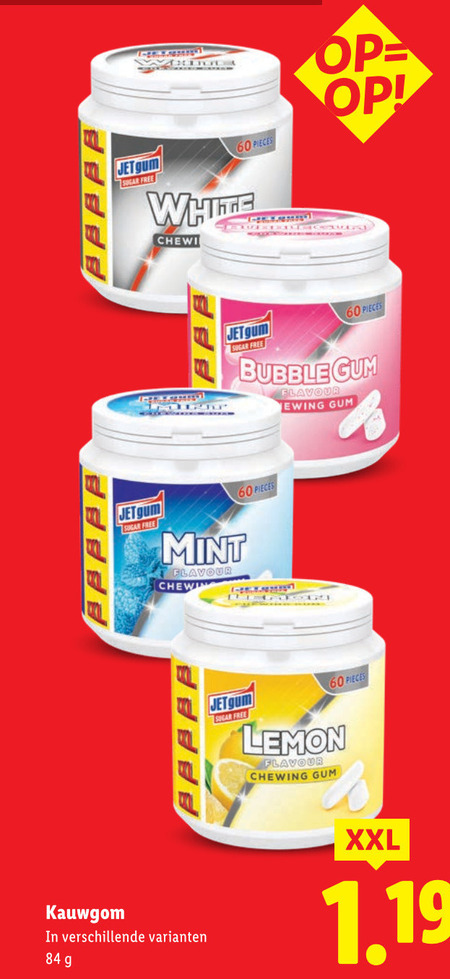60 jet gum pieces sugar free white mint flavour bubble lemon chewing kauwgom xxl