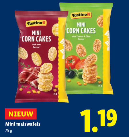 tastino mini corn cakes with ham flavour tomato olive maiswafels