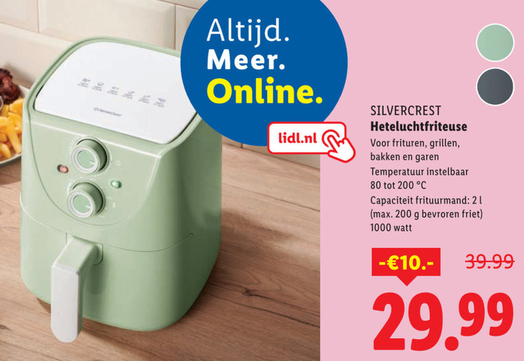 80 200 1000 online lidl.nl silvercrest heteluchtfriteuse frituren grillen bakken garen temperatuur instelbaar capaciteit frituurmand bevroren friet watt