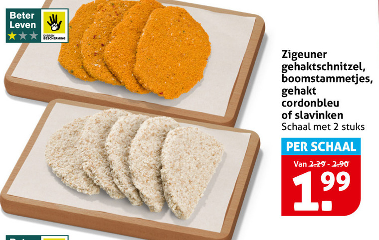 beter leven dieren bescherming zigeuner gehaktschnitzel boomstammetjes gehakt cordonbleu slavinken schaal stuks