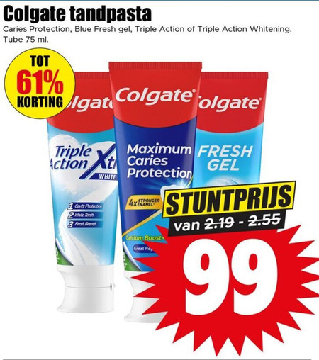 colgate tandpasta caries protection blue fresh gel triple action whitening tube ml white breath calcium boost rey