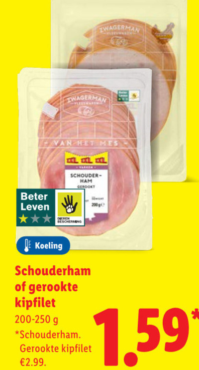 200 zwagerman beter leven mes ham gerookt dieren bescherming koeling schouderham gerookte kipfilet