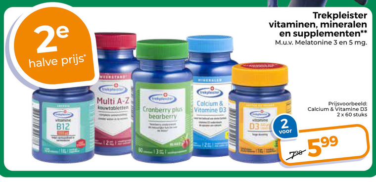 60 2e halve multi kauwtabletten cranberry calcium vitamine trekpleister vitaminen mineralen supplementen melatonine mg stuks