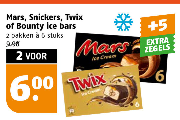 mars snickers twix bounty ice bars pakken stuks cream zegels