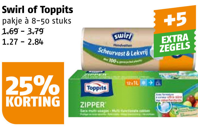 25 swirl toppits pakje stuks handvatten scheurvast lekvrij zegels zipper multi