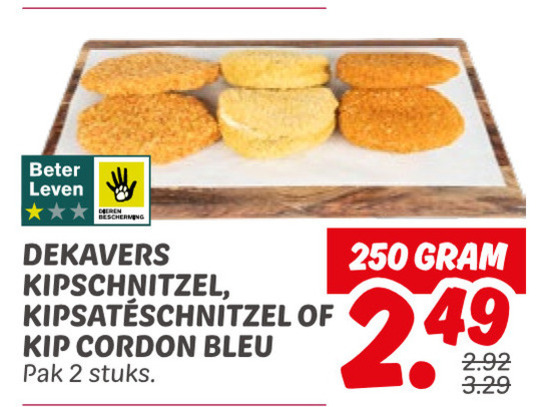 cordon bleu 250 beter leven dekavers kipschnitzel kip pak stuks