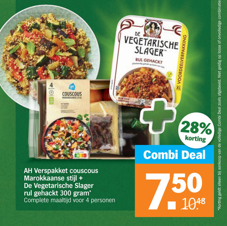 28 300 couscous vegetarische slager rul gehackt combi deal combinaties verspakket marokkaanse stijl maaltijd personen