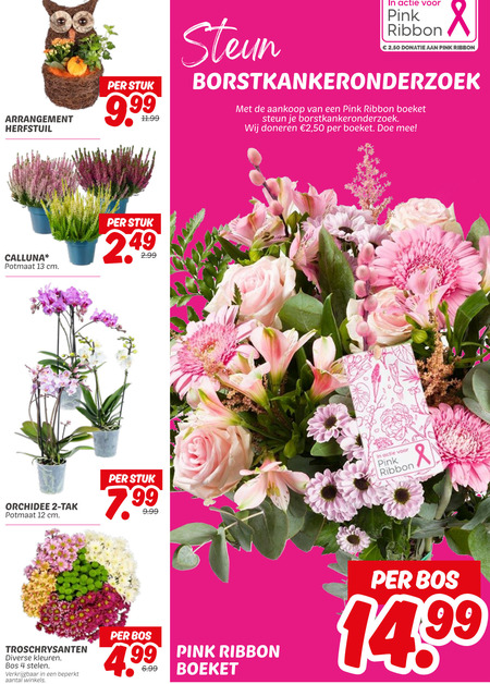 12 13 arrangement stuk steun pink ribbon 50 donatie boeket doneren calluna potmaat cm orchidee tak troschrysanten kleuren bos stelen beperkt winkels 14 99