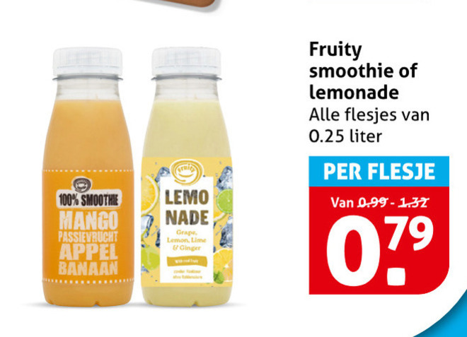 100 grape fruity smoothie lemonade 0.25 liter flesje mango passievrucht appel banaan lemon lime ginger