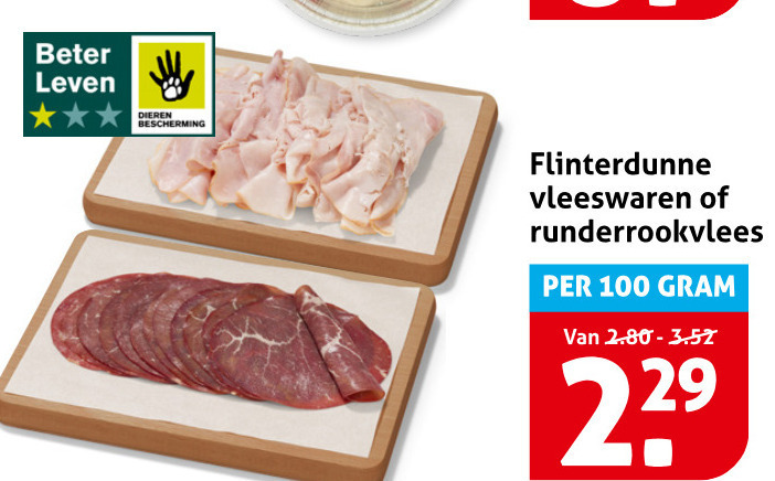 100 beter leven dieren bescherming flinterdunne vleeswaren runderrookvlees