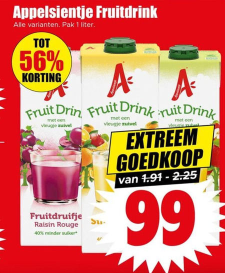 40 99 appelsientje fruitdrink pak liter fruit drink ruit vleugje zuivel raisin rouge minder suiker extreem