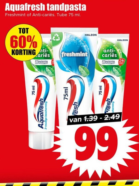 60 99 aquafresh tandpasta freshmint anti tube ml bescherming 75ml fresh