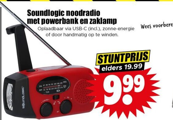 zaklamp oplaadbare accu soundlogic powerbank oplaadbaar usb zonne energie handmatig winden am elders