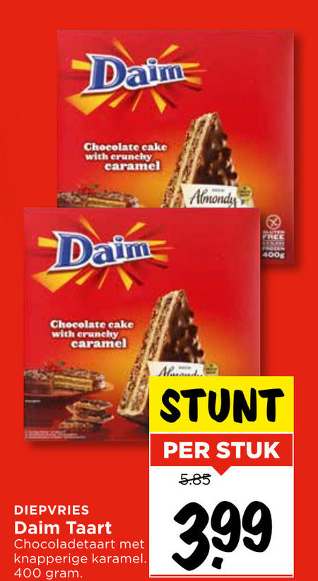 400 daim chocolate cake with crunchy caramel almondy free frozen diepvries taart chocoladetaart knapperige karamel stuk 3.99