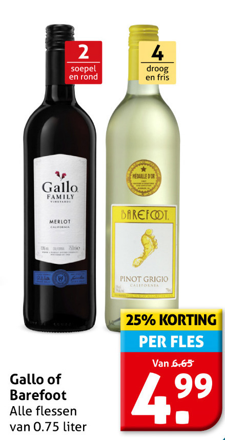 rode wijn witte 25 soepel rond droog fris gallo family merlot california medaille barefoot pinot grigio flessen liter fles