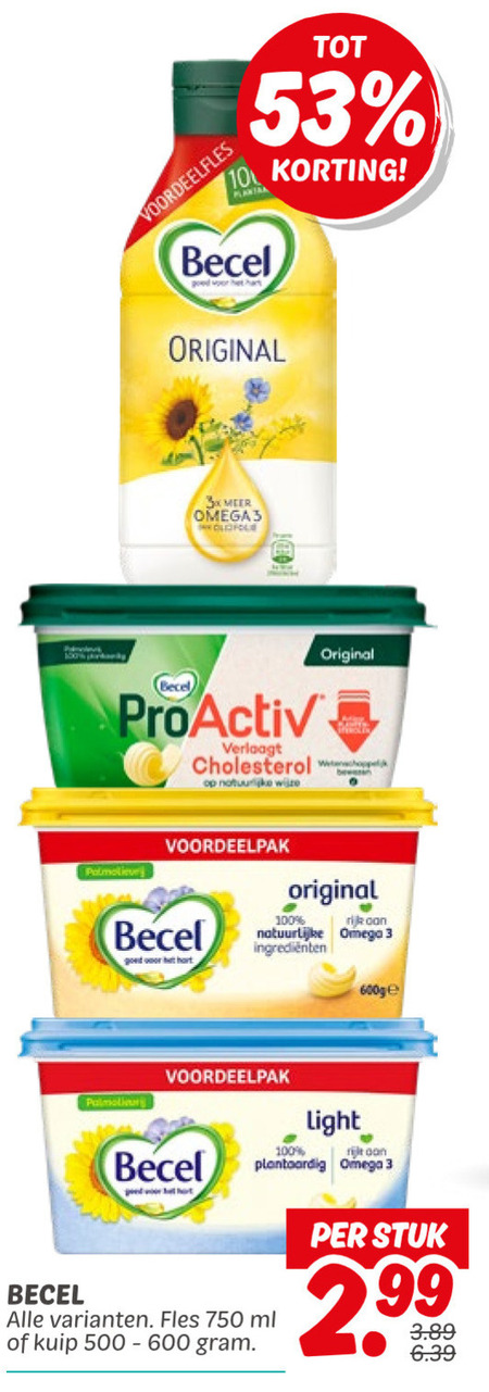 olie en vetten margarine 10 100 750 becel original 3x omega3 pro-activ verlaagt cholesterol natuurlijke wijze hart ingredienten rijk omega light plantaardig fles ml kuip stuk