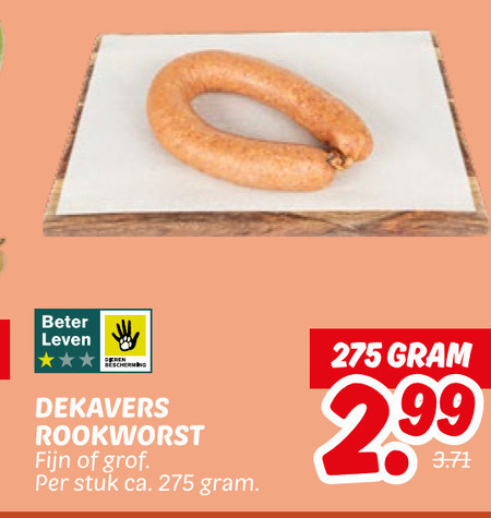 rookworst beter leven dekavers fijn grof stuk ca.