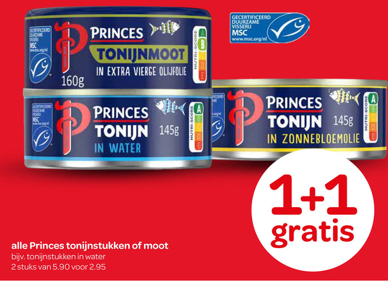 princes tonijnmoot vierge olijfolie nutri score gecertificeerd duurzame visserij www.msc.org nl tonijn water tonijnstukken moot stuks zonnebloemolie