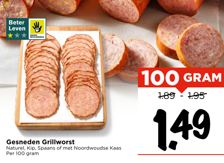 100 beter leven dieren bescherming gesneden grillworst naturel kip spaans noordwoudse kaas