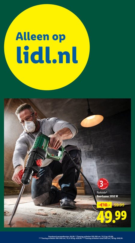 50 240 lidl.nl parkside garant jaar boorhamer verzendkosten 99 toeslag artikelen cm 31