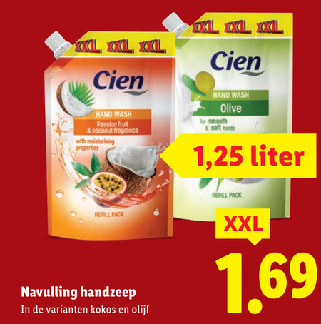 xxl cien hand wash passion fruit coconut fragrance with moisturising olive for smooth soft 25 liter pack navulling handzeep kokos olijf