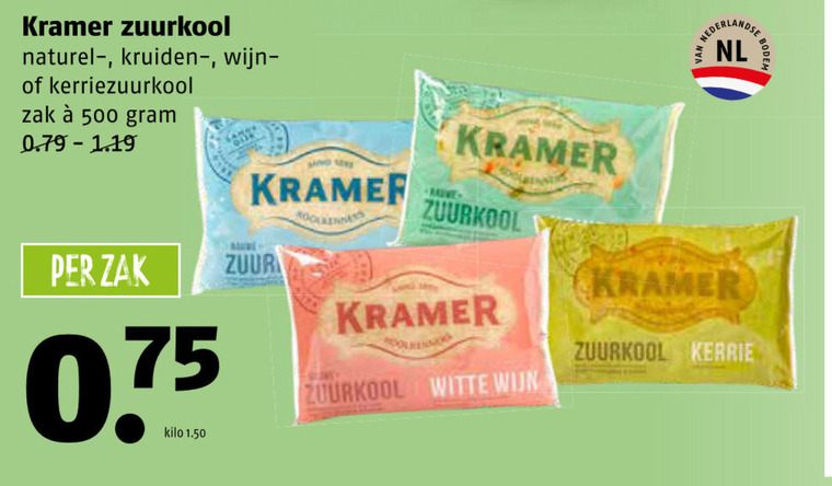 500 kramer zuurkool naturel kruiden wijn kerriezuurkool zak kilo zuur rauwe witte nederlandse nl kerrie bodem