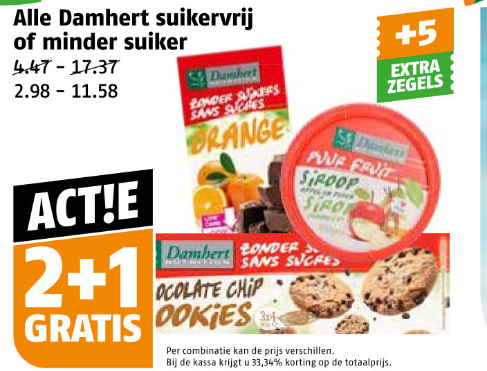 damhert suikervrij minder suiker sans fruit siroop siro ambert sucres chocolate chip combinatie kassa 33 34 zegels