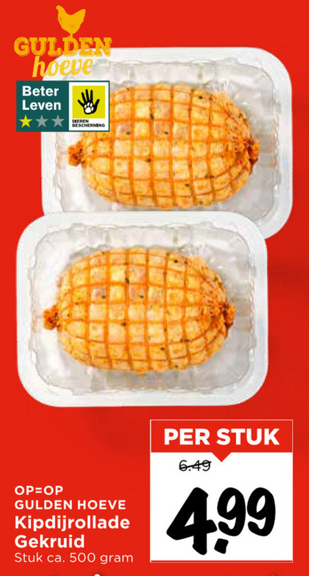 kiprollade 500 gulden hoeve beter leven dieren bescherming kipdijrollade gekruid stuk ca.