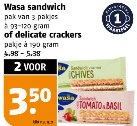 350 wasa sandwich pak delicate crackers pakje sa chives tomato basil kilo v.a.