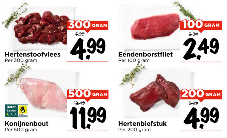 100 200 300 500 beter leven konijnenbout 5.99 eendenborstfilet hertenbiefstuk