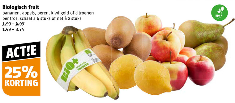25 biologisch fruit bananen appels peren kiwi gold citroenen tros schaal stuks bio