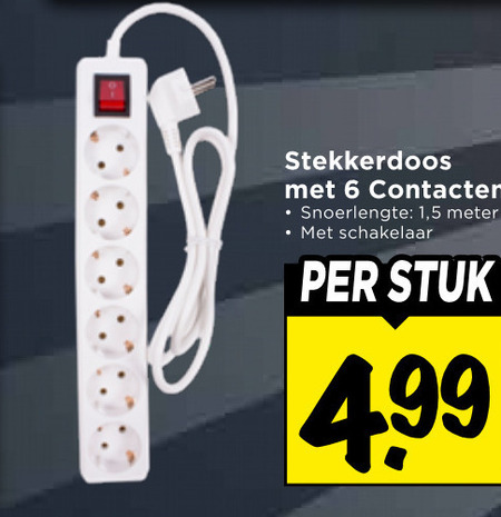 stekkerdoos contacten snoerlengte meter schakelaar stuk