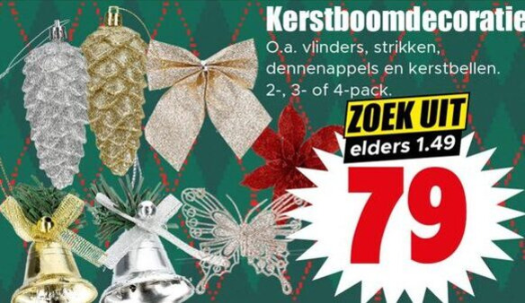 kerstboomdecoratie o.a. vlinders strikken dennenappels kerstballen pack zoek elders