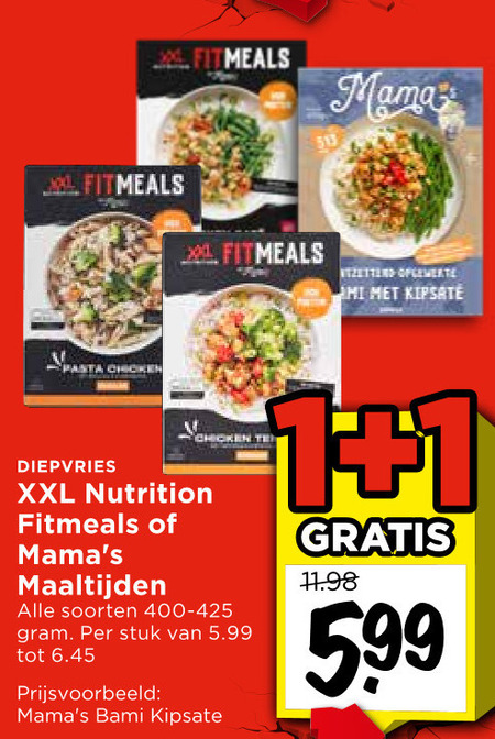 pasta chicken diepvries mama kipsate xxl nutrition maaltijden soorten 400-425 stuk 5.99 bami