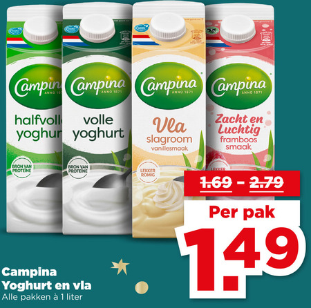 min campina anno halfvolle volle yoghurt vla slagroom vanillesmaak zacht luchtig framboos proteine pakken liter romig pak