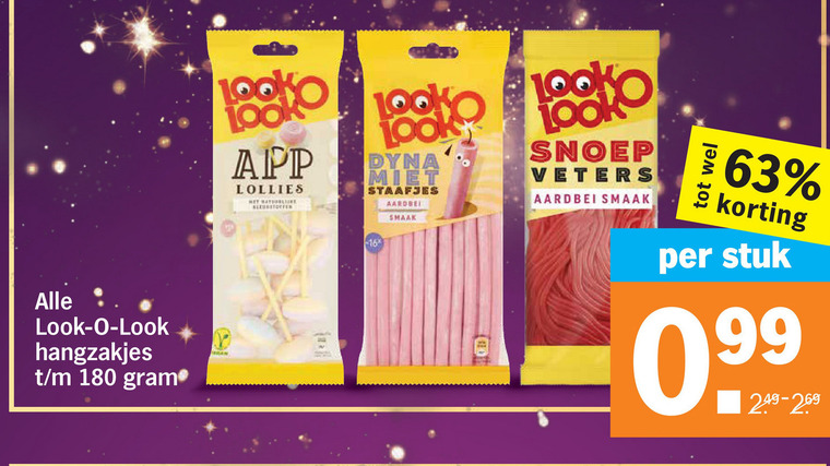 snoep 16 180 hangzakjes look-o-look lollies staafjes aardbei veters stuk 99