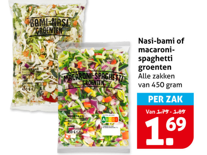 groentenpakket 450 bami nasi groenten peper macaroni min prei spaghetti zakken zak