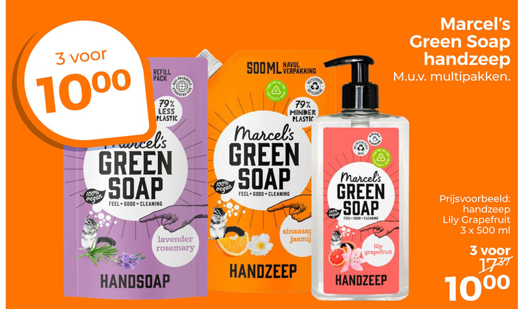 handzeep 100 500 10 pack less plastic green soap feel good cleaning minder multipakken lavender rosemary handsoap sinaasappeldrink lily grapefruit ml