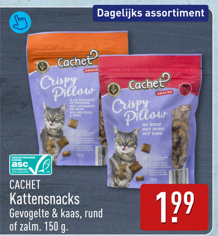 kattensnacks 150 dagelijks assortiment cachet crispy kweek gecertificeerd asc-aqua.org snack pillow la fromage gevogelte kaas snacks rund anti zalm